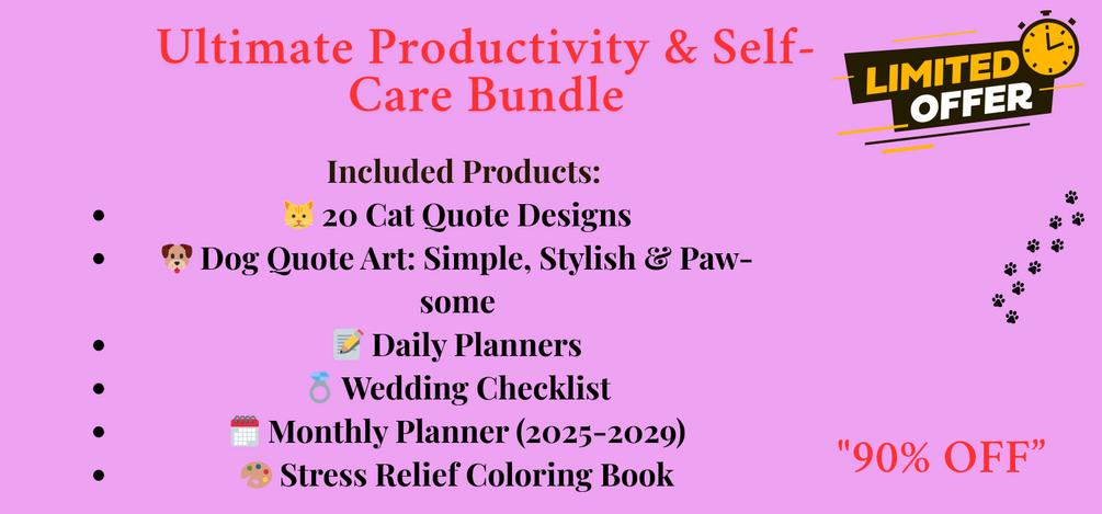 Get organized, inspired, and relaxed with this paw-some bundle of bestselling digital goodies! Perfect for planners, pet lovers, brides-to-be, and anyone who needs a little more joy in their routine.